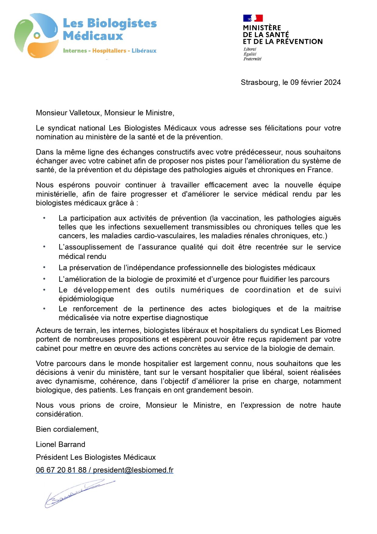 Publié dans Actualités - Communiqués. Félicitations à Monsieur Frédéric Valletoux pour sa nomination au poste de Ministre Délégué Chargé de la Santé et de la Prévention Créé le 12 février 2024.