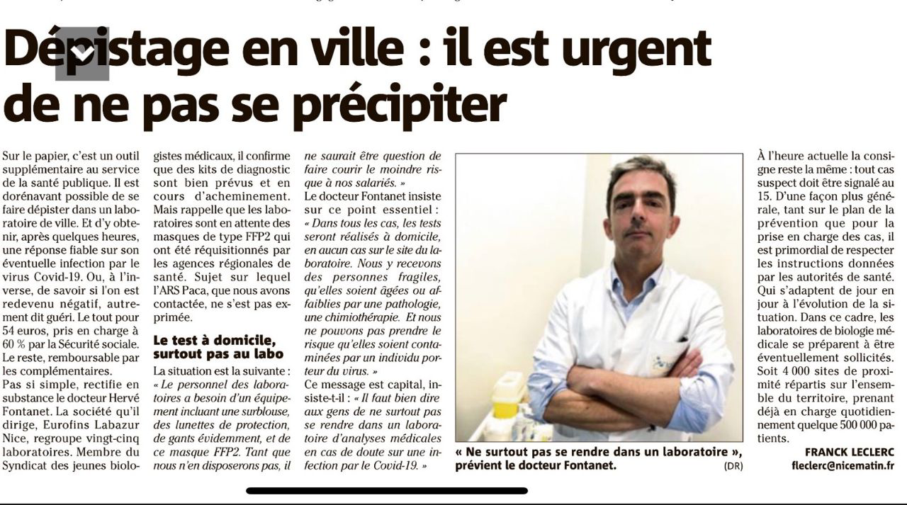 Coronavirus les biologistes très déçus des annonces de Jean Castex. |